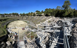 Des arènes antiques de Saintes (classées M.H. en 1840), il ne subsiste aujourd'hui que la Porte des Vivants et les fondations de la cavea, qui émergent d'un vallon verdoyant pour former l'une des plus belles ruines romantiques de la région. Mais leur sauvegarde est aujourd'hui mise en péril : l'une des deux portes d'accès (fermée au public) menace de s'effondrer, de nombreux points structurels font défaut et l'arène subit des inondations à répétition. Une vaste campagne de renfort structurel et de restauration des vestiges a donc été lancée par la ville, en 3 tranches (Porte des Vivants, Porte des Morts, arena et refonte complète des aménagements hydrauliques). Nous avons également réalisé une simulation numérique des arènes dans leur état antique, à l'attention du public, avec nos partenaires Novae et grâce au travail collaboratif d'un comité scientifique chapeauté par les plus grands spécialistes des arènes antiques : J.-C. Golvin, L. Maurin, ...